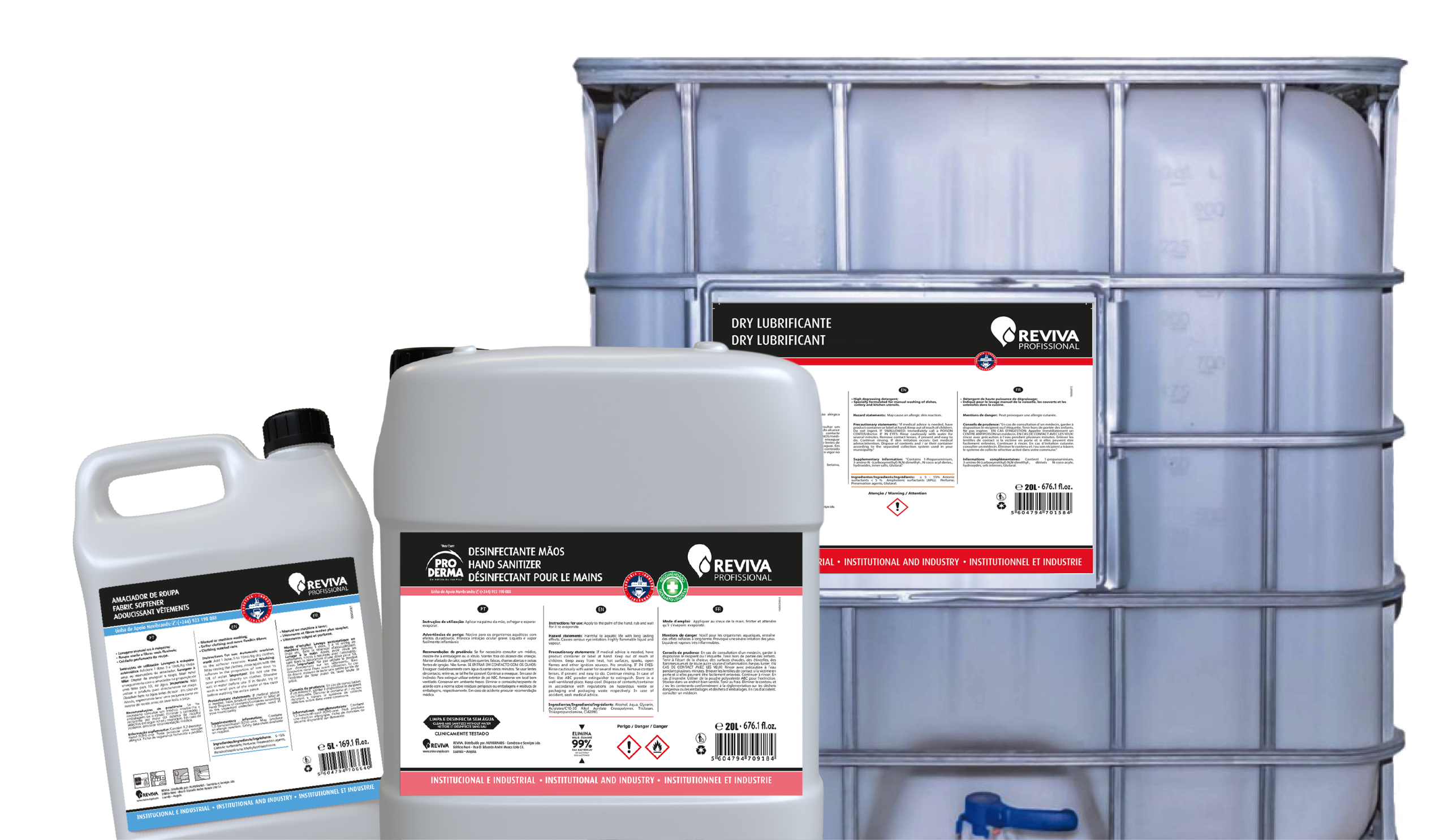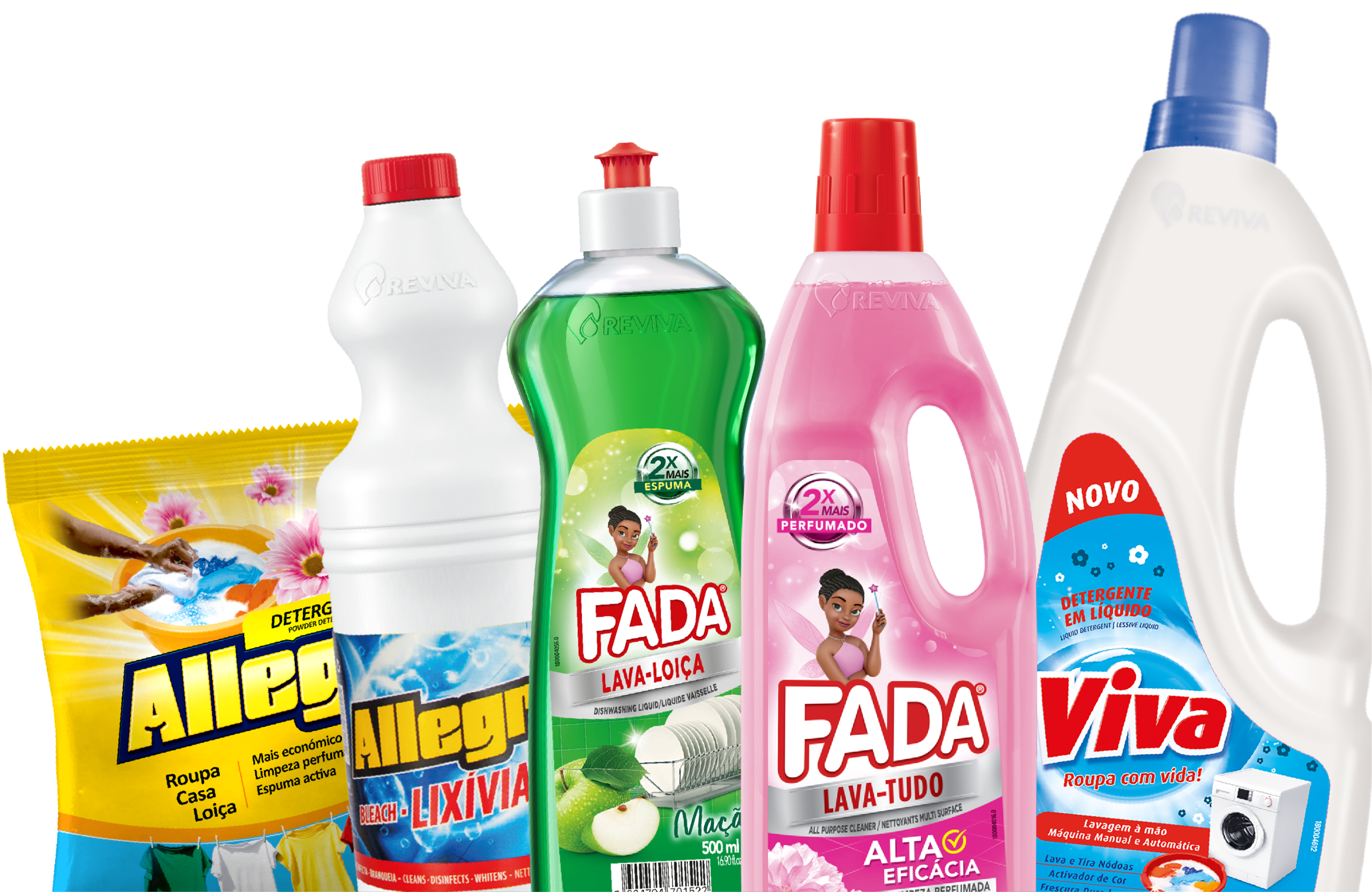 Orgulhamo-nos de ser o maior fabricante de Higiene Pessoal e Detergentes Líquidos em Angola, com produção assegurada pela nossa unidade industrial — a fábrica Reviva.