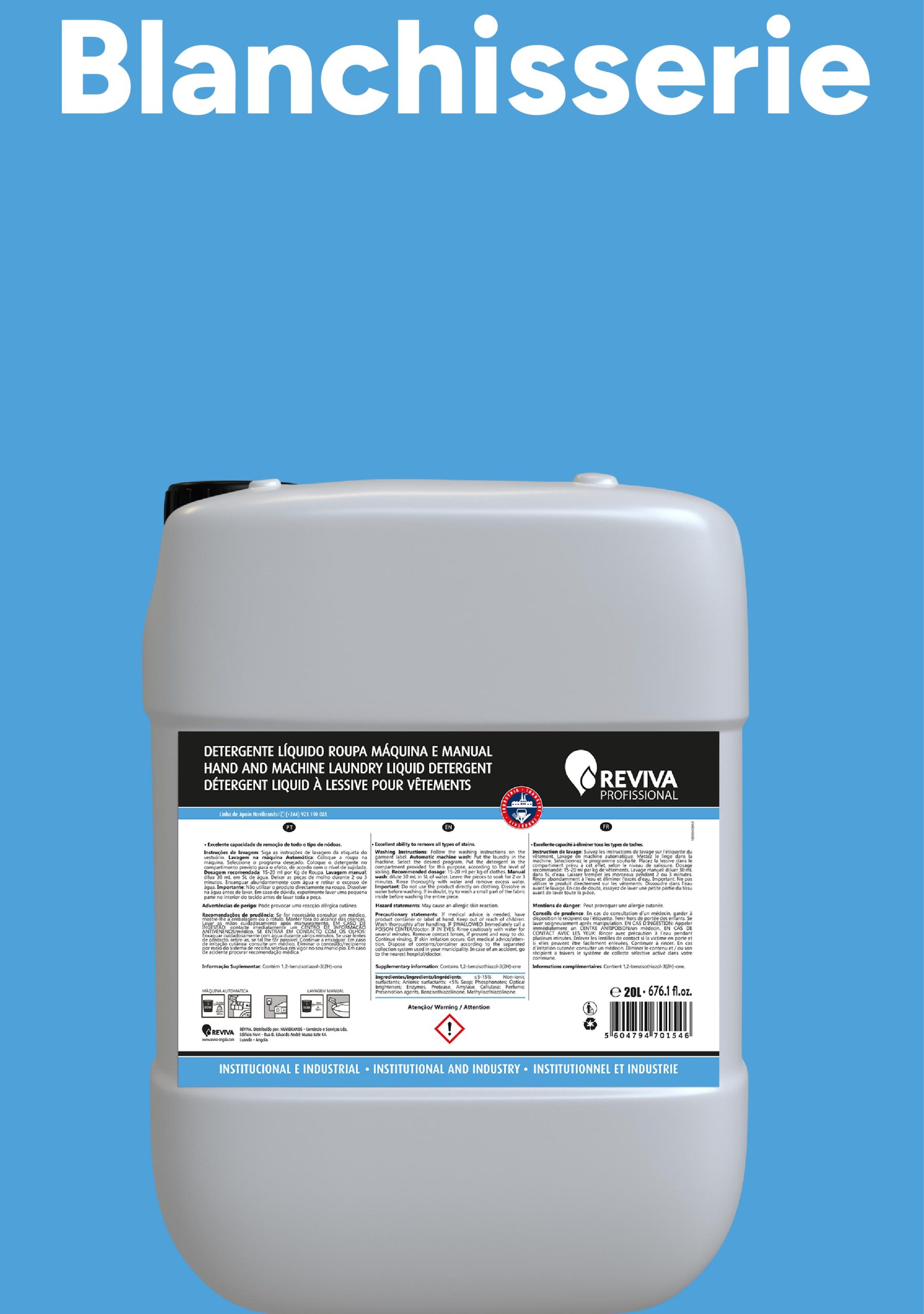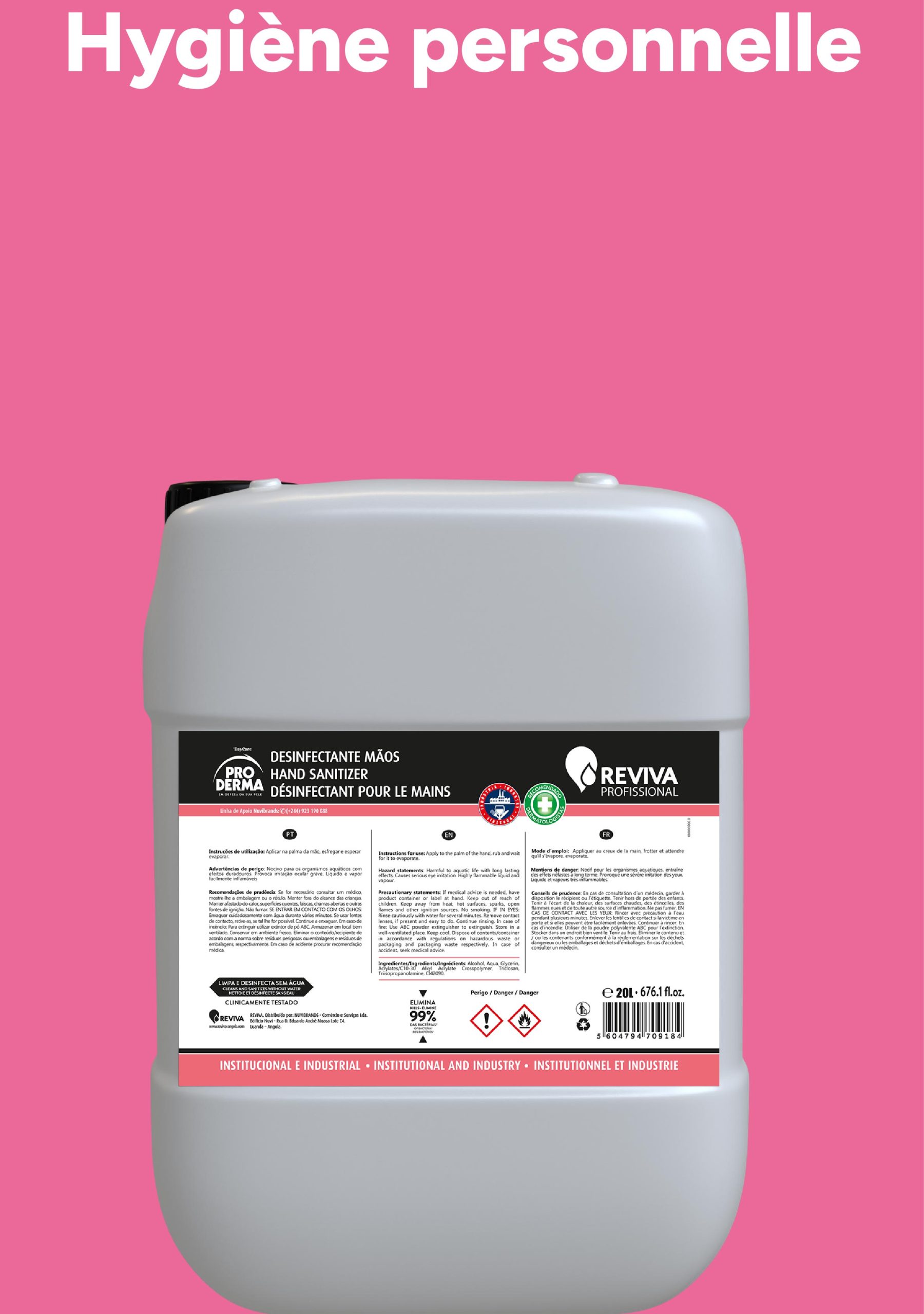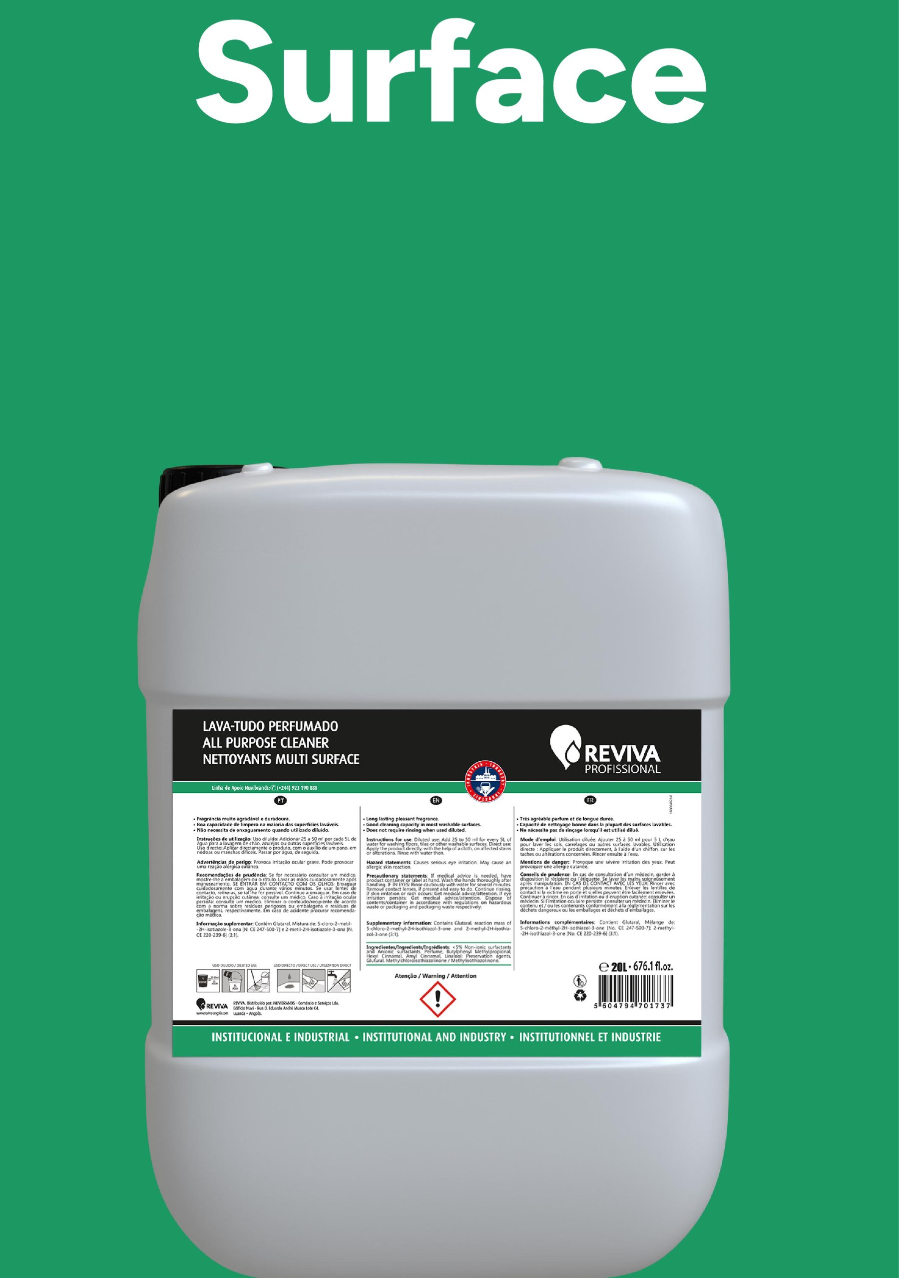 Reviva Professionnel a été fondée en 2013 dans le but de répondre aux besoins de nettoyage et d’hygiène du secteur professionnel sur le marché angolais, incluant l’hôtellerie, les hôpitaux, les cliniques, les espaces commerciaux, les restaurants, la restauration, et d’autres institutions.